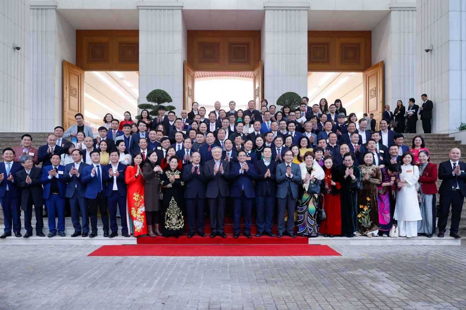 Thủ tướng Chính phủ Phạm Minh Chính chụp ảnh kỷ niệm cùng đại diện các doanh nghiệp nhỏ và vừa Việt Nam. Ảnh: VGP/Nhật Bắc